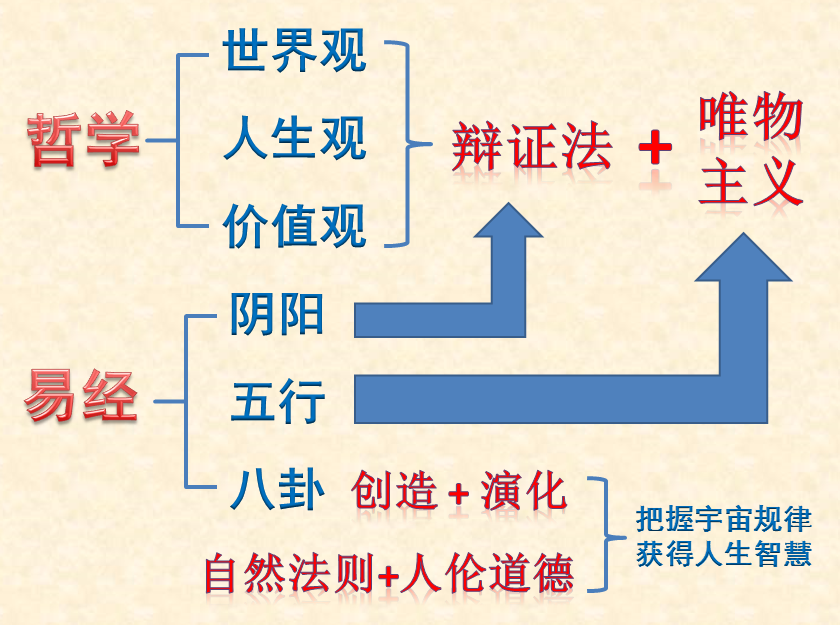 世界上著名的四大古文明,除了中华文明没有断代薪火相传延续至今以外,其它三大古文明均已湮灭在历史的尘埃中。创立于大约七千多年前的易经八卦与阴阳五行学说,被称为中华文明的总源头,是大道之源、群经之始。“一分为二”与“合二为一”的阴阳观,与马克思主义的辩证法具有高度的切合性,而五行观点与马克思主义的唯物论具有一致性,阴阳五行学说就是中国古典哲学的源头。按照五行学说的解释,自然宇宙存在五种属性的物质,分别为木、火、土、金、水,这五种物质存在着相生相克的关系,互相制约、转化,才有世间万物的生生不息。